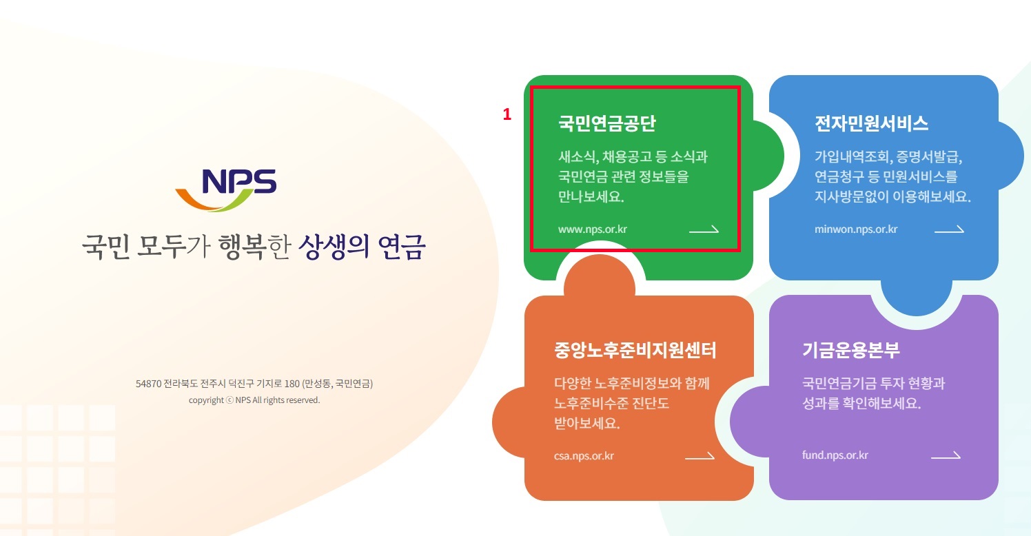먼저, 국민연금공단 홈페이지(www.nps.or.kr)로 접속합니다.