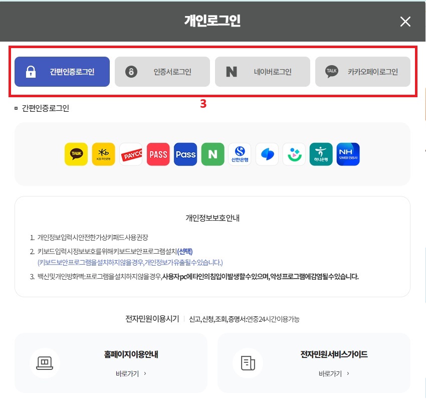 간편 인증도 가능하고 여러 가지 편한 방법으로 선택하시면 됩니다.